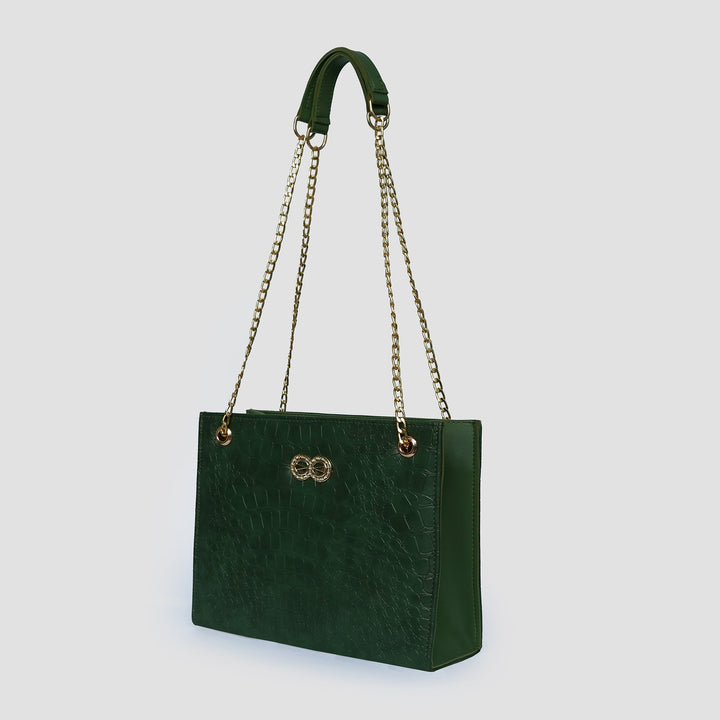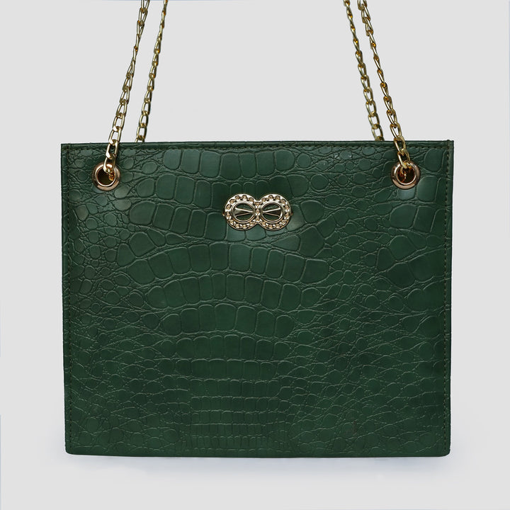 "Elegant croc-textured handbag with golden chain straps – perfect for both casual and formal looks."